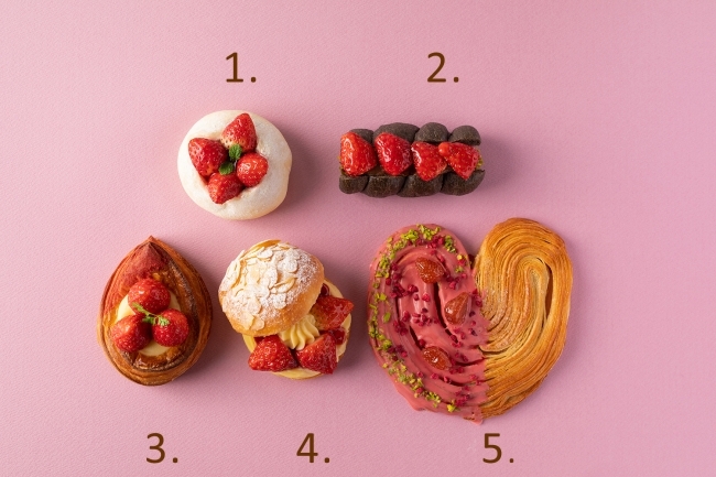 軽やかな食感のデニッシュや、ふんわりとしたブリオッシュなど、春に旬を迎える苺の美味しさをベーカリーシェフが五種五様に表現。お出かけやホームパーティーなど、麗らかな春のひとときを彩る甘いアイテムをお楽しみください。