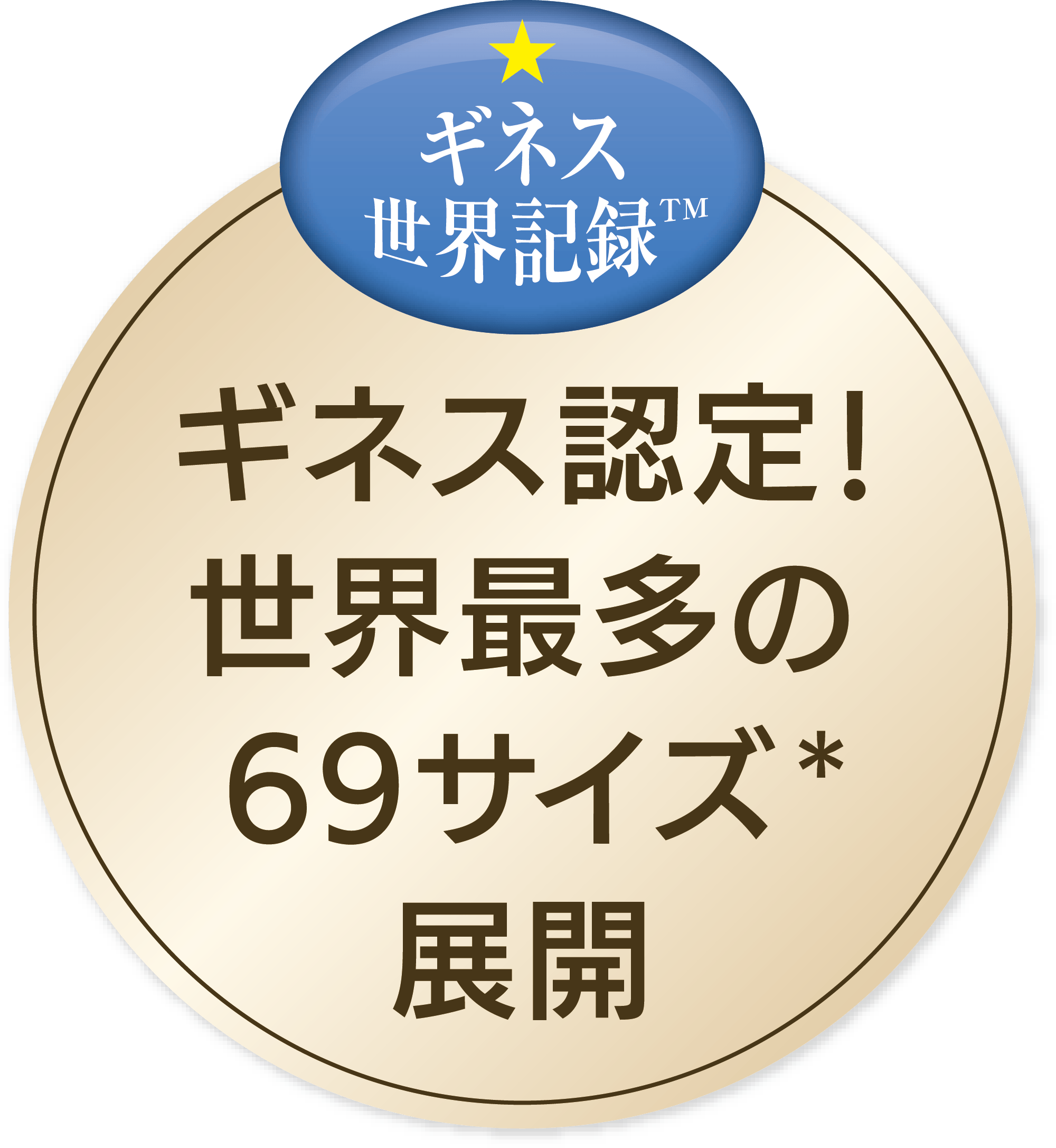 ※1 ダイアジェンヌ ブラジャー(フルカップ)は「1デザインのサイズ展開が世界最多の69サイズ」であることについて、ギネスに認定されています。
