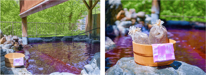 ラベンダーは抗菌作用の他にも、イライラを鎮めるなどリラックス効果も高いとされるハーブで、このポプリを入れた爽やかな香りの湯を露天風呂でお楽しみいただけます。