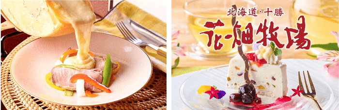 右:春のフェアに続き、花畑牧場の人気スイーツが登場。リコッタチーズとクリームチーズにドライフルーツを混ぜ込んだイタリア・シチリア半島伝統のアイスケーキ「カッサータ」をお見逃しなく。