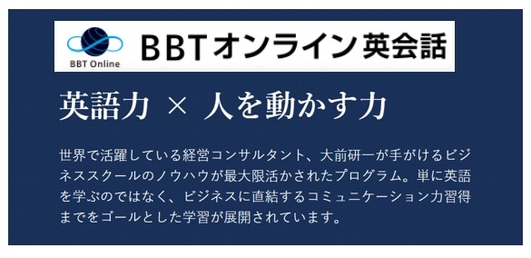 BBTオンライン英会話は、ビジネス英会話に特化しビジネスパーソンを対象とした、単なる英会話習得ではなく英語をツールとして実際のビジネスで成果を出すことを目指すオンライン英会話サービスです。