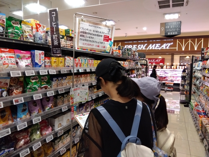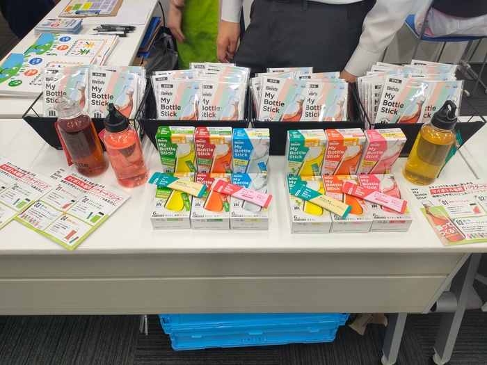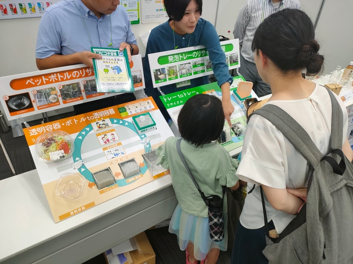 また、今回はコーヒーなどのメーカーである味の素AGF株式会社と、食品トレーなどを製造する株式会社エフピコとも共同でイベントに参加しました。味の素AGF株式会社からは「ブレンディ®マイボトルスティック」を紹介しながら、紙包材による環境負荷低減やマイボトルによるペットボトル削減を呼びかけました。株式会社エフピコからは、ライフの店頭で回収したペットボトルや食品トレーのリサイクル工程について模型を用いながら解説し、参加者の環境意識を高めていただきました。