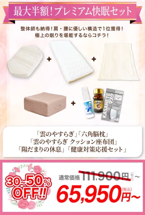快眠グッズ4点に健康対策セットがついた豪華5点セット!