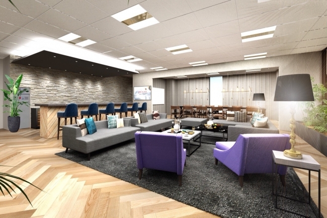 オープンスペースには下がり天井のあるバーカウンターやソファ、グリーンを配置することにより、機能性を重視したワークスペースとは異なるゆったりとした雰囲気を演出。随所に人が溜まれる場を設けることにより、リラックスした中でインフォーマルなコミュニケーションが活性化される場となっています。