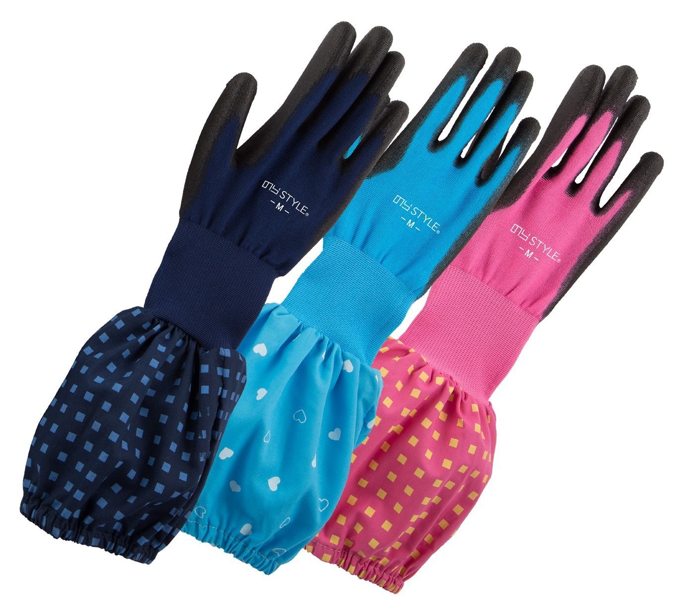 手の平側にウレタンコーティングを施した作業性抜群の手袋と、柄がプリントされた袖(腕)カバーが合体した便利アイテムで、農作業から家庭菜園・ガーデニングはもちろん、袖回りの汚れもカバーできるのでDIY等でも活躍します。