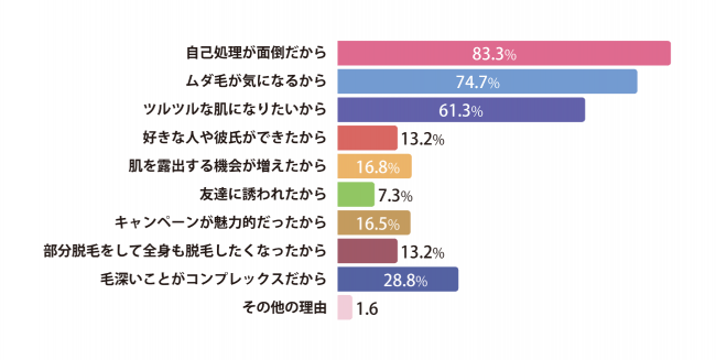 全身脱毛を始めるきっかけの8割は「自己処理が面倒だから」