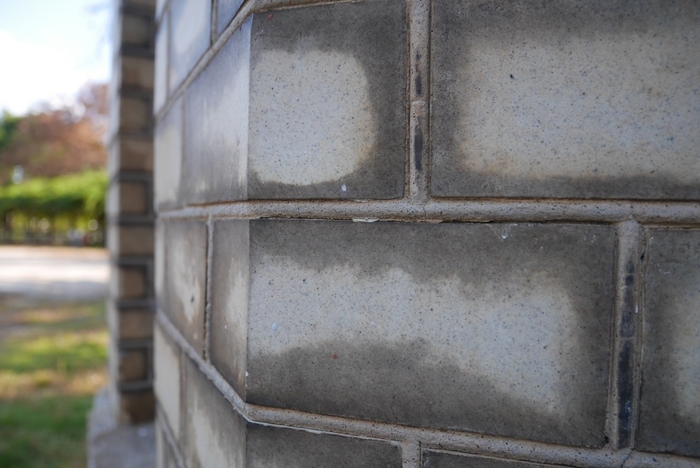 軒蛇腹(のきじゃばら)や覆輪目地(ふくりんめじ)は、明治時代の建築らしい意匠です。特に覆輪目地は東京駅にも見られるもので、目地の断面をコテで半円状に整えた美しい仕上げです。また、正面の庇を支える「持ち送り」も洋風な意匠です。