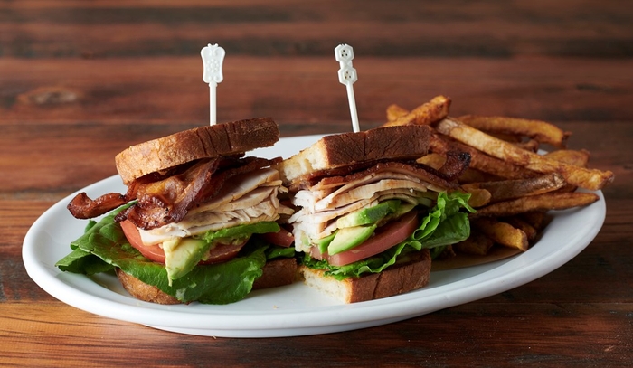 低カロリー、高タンパクのターキーブレスト、熟成ベーコン、アボカドスライス、レタス、トマトをカンパーニュブレッドで豪快にサンド