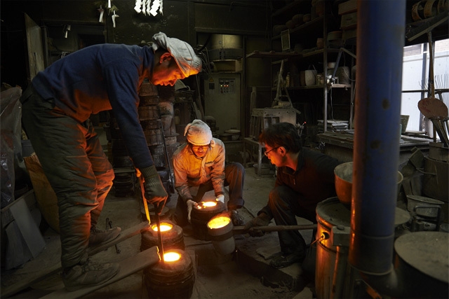 釜定は明治時代に盛岡市紺屋町にて「宮鉄瓶店」として創業し、100年以上、南部鉄器を作り続けています。宮定吉、宮昌太郎、宮伸穂と三代にわたり、昔ながらの製法を守りながら、現代の生活になじむモダンデザインの南部鉄器をつくり続け、岩手、そして日本の伝統文化を支え続けています。