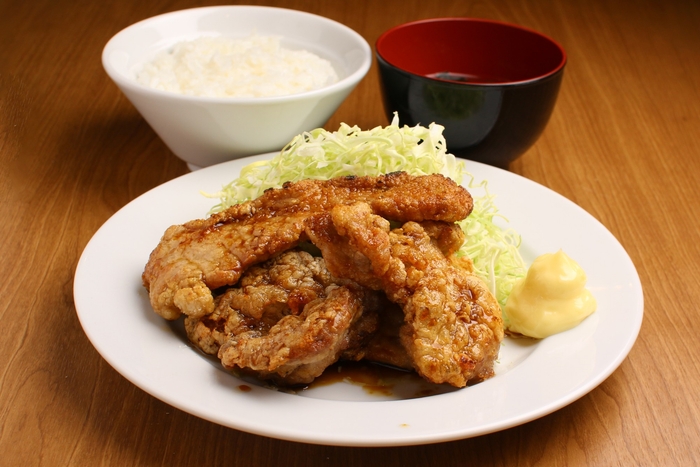 柔らかく仕上げた豚肉を、カリッとした衣で揚げた「豚から」。1個1個が大きく食べ応えも抜群。通常3個だが、1個150円で追加もできる。甘辛のタレが食欲をそそる。