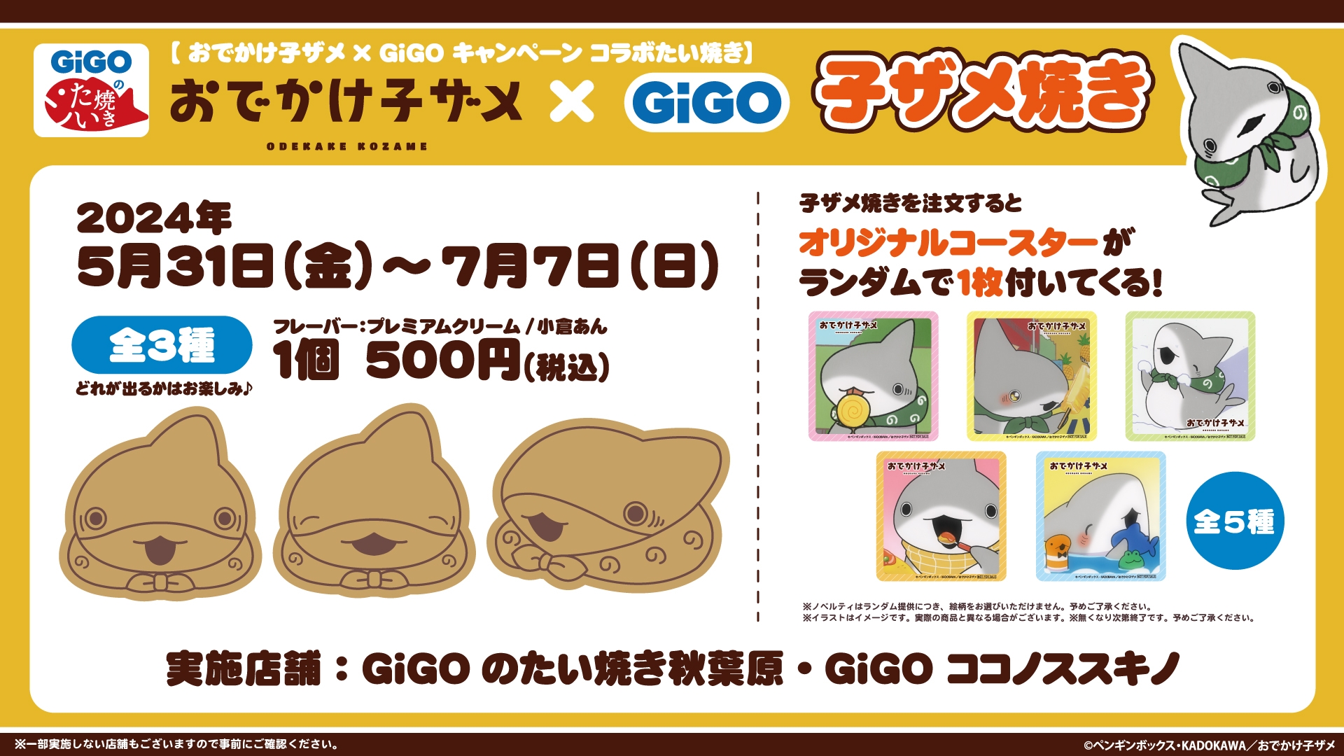 GiGOのたい焼き秋葉原、GiGO ココノススキノにてオリジナルコースター(全5種)がランダムで1枚付いてくる「子ザメ焼き」を販売いたします。