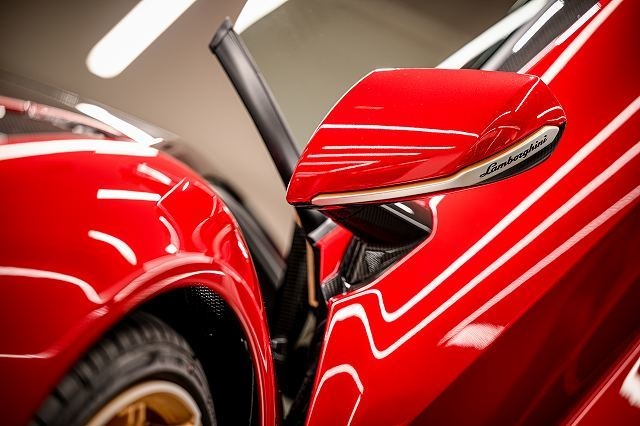 ボディカラーは、「日本への正規輸入50周年」を記念し製作されたLamborghini Aventador S Roadster 50th Anniversary Japan Edition 「火」のレッドとブラックとのグラデーションカラーに合わせ、フロントからリアにかけてレッドのグラデーション塗装が施されています。