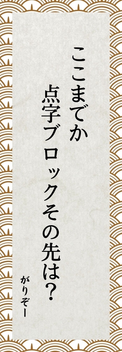 今年は、次のような言葉が作品に特に多くみられました。「歩きスマホ」「セルフレジ」「タッチパネル」。どれも機器にまつわるものです。そして、どれも人との直接的なつながりを薄弱にしてしまうものばかりです。