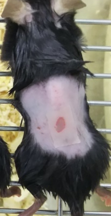 【試験内容】マウスにコントロール(アガリクスなし)、ハウス栽培アガリクス、露地栽培アガリクス入りのエサを与え、背中を剃毛後に生検用器具(直径2mm)で切除。皮膚のコラーゲンの産生や経時的に傷の修復率を測定。
