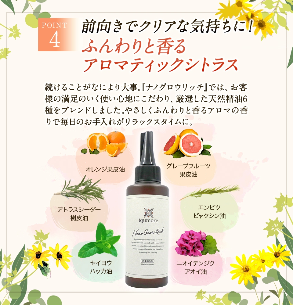 効果効能 :育毛、薄毛、脱毛の予防、毛生促進、発毛促進、