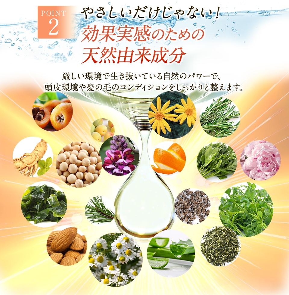 厳しい環境下で育つ自然のパワーで、頭皮環境をしっかり整えます