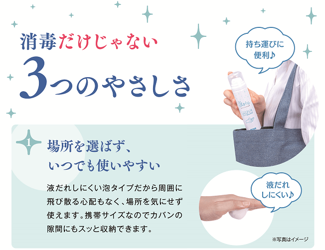 ~バッグにポン!持ち運びに便利なハンディタイプの泡の消毒液~ 保湿成分配合で繰り返しの消毒にも