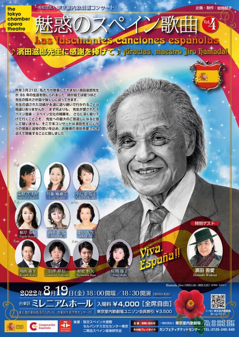 一般社団法人東京室内歌劇場『魅惑のスペイン歌曲Vol.4 ♪濱田滋郎先生に感謝を捧げて♪』