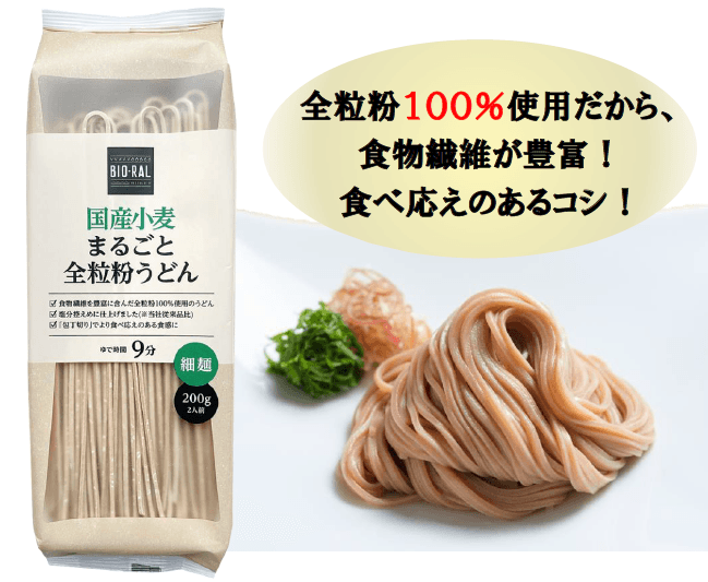食物繊維が豊富!全粒粉を使用した「BIO-RAL 国産小麦まるごと全粒粉うどん」新発売