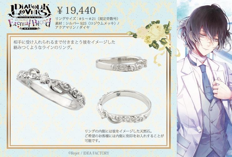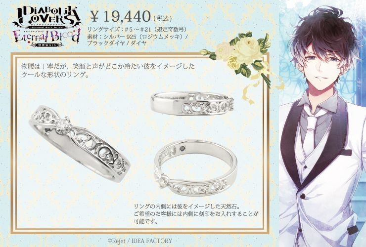 「DIABOLIK LOVERS 無神家5th Eternal Blood」より 無神家4兄弟をイメージしたリング発売 世界に一つだけのリングにできるオリジナルメッセージ刻印も