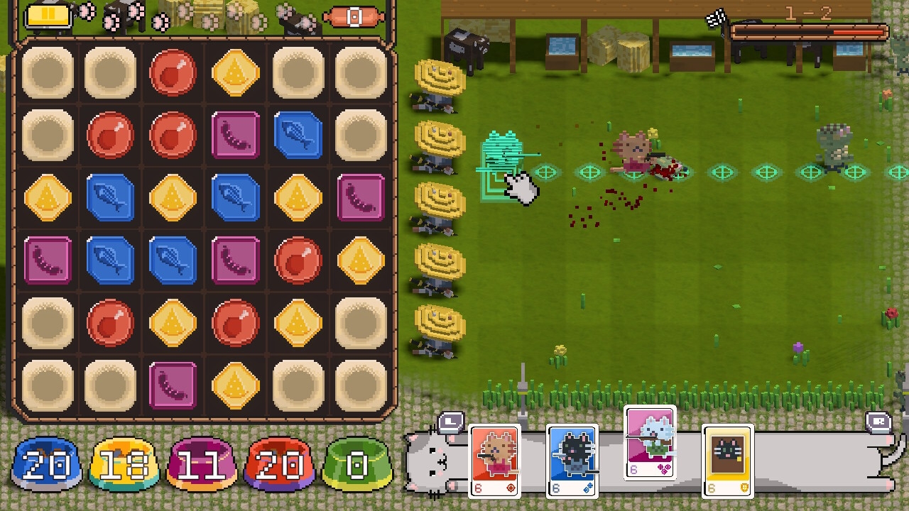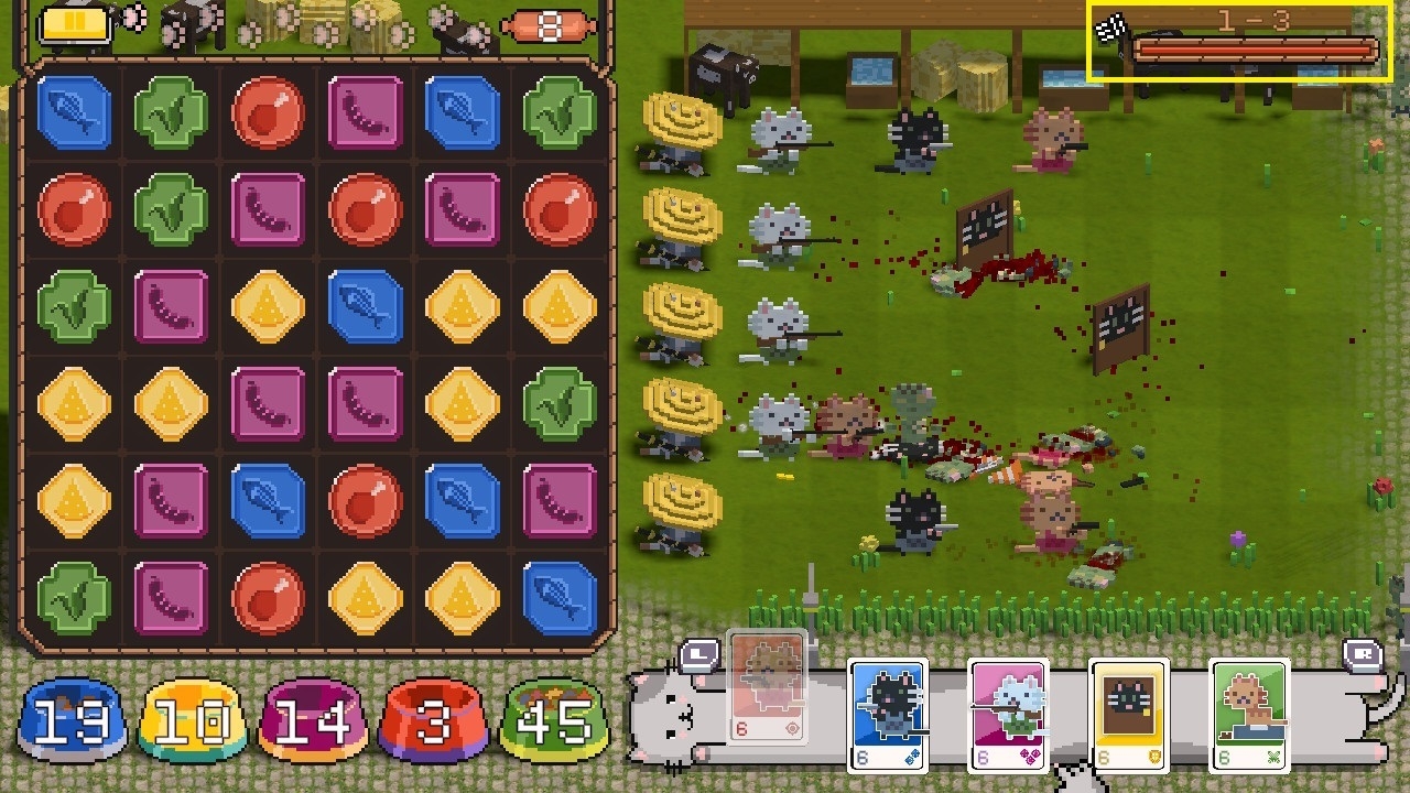 各ネコは対応する色のリソースを消費するので、バトル中にリソースを収集することを忘れないようにしてください。同時に敵の侵入を防ぐ必要もあります。