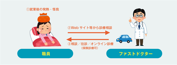 ファストドクターは8都府県の医療機関と提携し、夜間、休日に医療相談・救急往診・オンライン診療が受けられる環境を提供しています。年間36,000件以上のプラットフォーム利用があり、提携医療機関からは保険適用で内科・小児科・整形外科などの医師が訪問・テレビ電話で診察し、その場で処方薬をお渡し・宅配します。このコロナ禍においては、医師が必要と判断した場合にご自宅でのPCR検査・抗原検査も可能です。