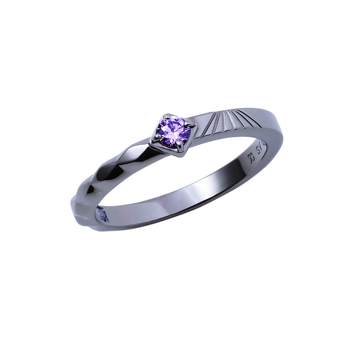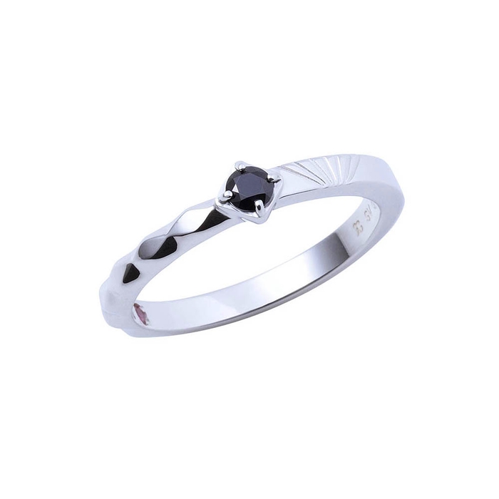 カット風の加工を施したトップのベビーリングに、イメージカラーストーンを1石セットした、VAZZYを連想させるブラックカラーのデザイン。