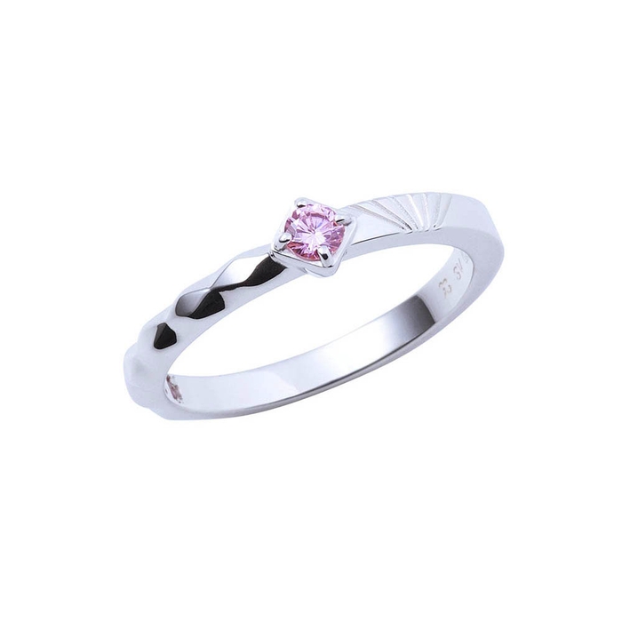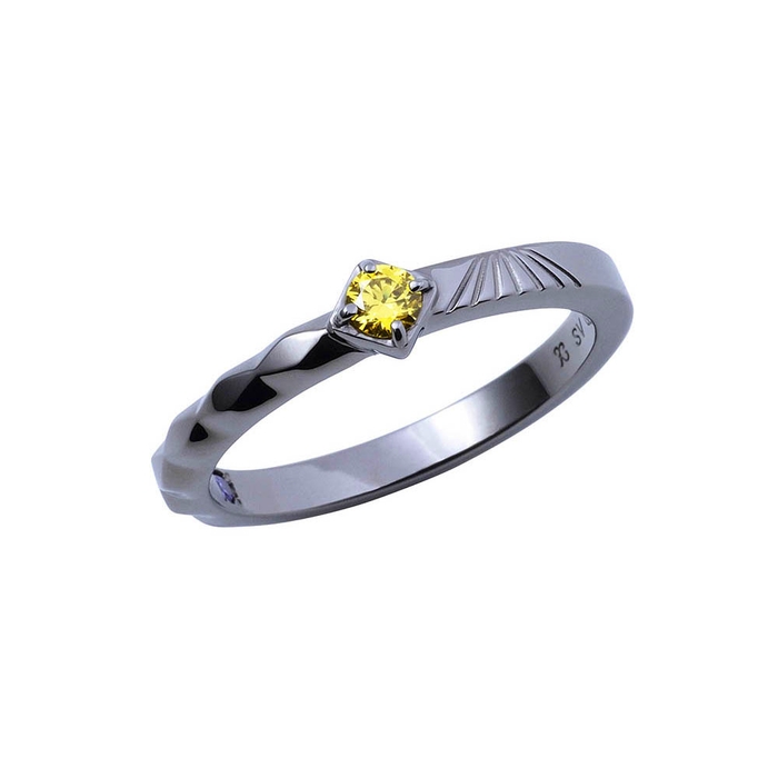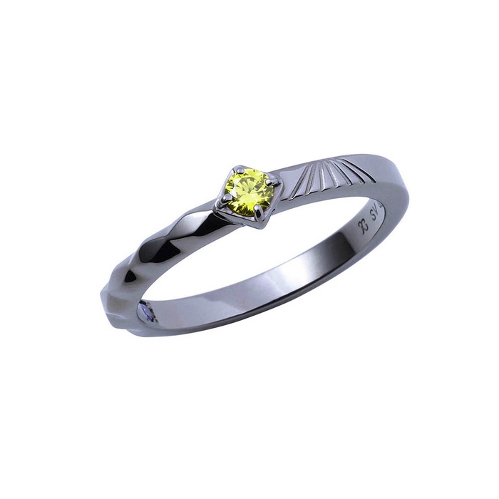 ストレートフォルムのリングにキラキラと輝くカット風の加工を施し、