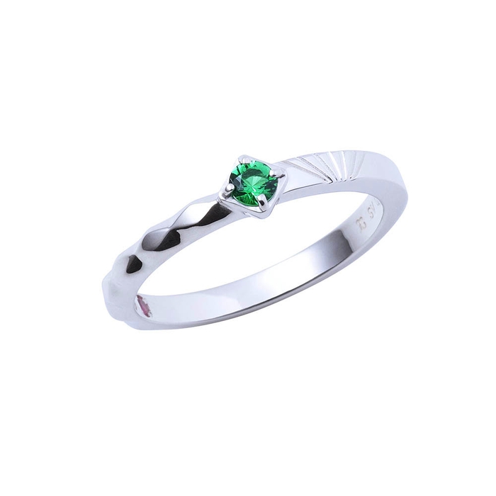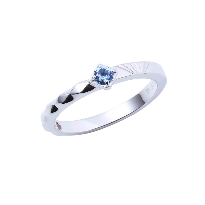 カット風の加工を施したトップのベビーリングに、イメージカラーストーンを1石セットした、ROCKDOWNを連想させるシルバーカラーのデザイン。