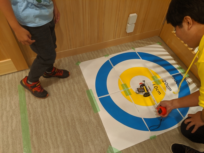 回転サーボモーターの操作をクイズ方式で学びながら、カーリングのストーンをラジコンカーに変え行うミニゲームを通して、ハードウェアの個体差などにも触れ、最後はリモコンで動かすために無線通信を取り入た改造を実施しました。