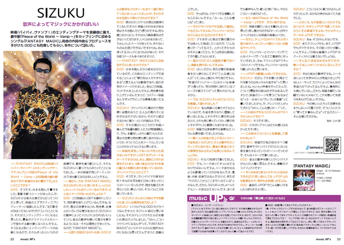 その他にも11月にはGODがディレクションしてMANAが映像を担当した「FANTASY MAGIC」のミュージックビデオが地上波テレビで放送される事や、関東の民放FM局でのSIZUKUの冠番組も決定しているという事ですが、それは別の機会にお話します。SIZUKUのさらなる活躍に期待してください。