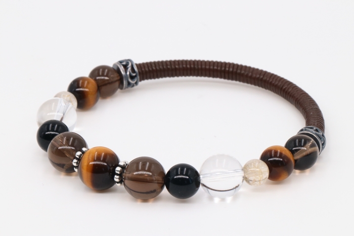 牛革ならではの重厚感・高級感を感じて頂けるとともに、天然石ブレスレットをシンプルでスタイリッシュな印象へと仕上げてくれます。