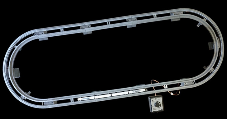 ガイドウェイ間に浮いた状態のままリニアが高速走行します。磁石の吸引力で浮上するので、電源を切っても車体はガイドウェイに浮き続けるため浮上するインテリアとしてもお使いいただけます。