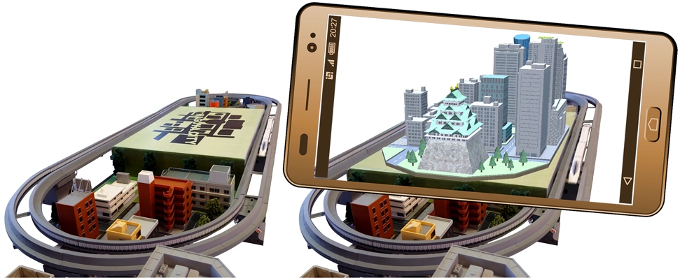 仮想映像ジオラマを投影できるスマホ連動ARジオラマセット、