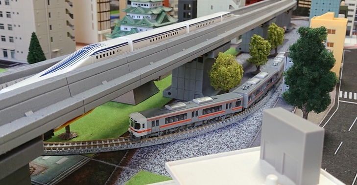 高架型軌道のため、従来のNゲージレイアウトやジオラマに立体交差として組み込むことができます。