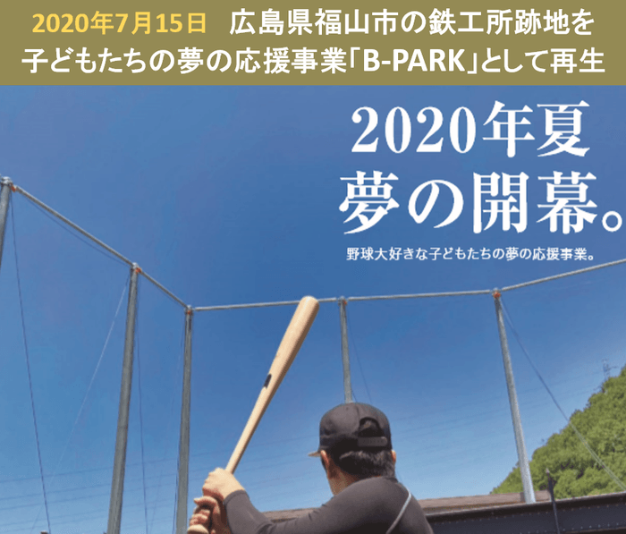 今後、『B-PARK(ビーパーク)』では、プロ野球選手を招いたトークショーや野球体験教室、元プロ野球選手が指導する親子キャッチボール体験会、プロ野球試合のパブリックビューイングなど、様々なイベントを企画中。福山を中心に、「子どもたちの心・体・技術の健やかな成長をサポートする」を目的として事業展開する『B-PARK(ビーパーク)』に乞うご期待ください。