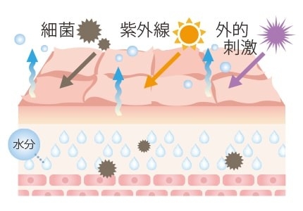 ところが間違ったスキンケアや生活習慣などによって、皮膚のバリア機能が低下すると角質からセラミドが流出。角質細胞の間にすきまができることで、お肌が乾燥し、外界からの刺激物質、アレルギー物質、細菌などが侵入し、刺激となってしまうのです。