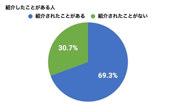 さらに紹介キャンペーンで紹介した経験の有無を合わせて比較すると、紹介キャンペーンで紹介したことがある人の中では69.3%が紹介された経験があるのに対し、紹介したことがない人の中ではわずか9.7%の人しか紹介された経験がなく、紹介した経験の有無の間で大きな差が見られました。つまり、紹介キャンペーンでは紹介したり、されたりという関係にあるケースが多いようです。