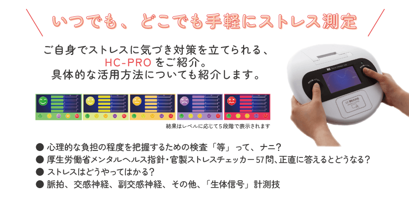 ■詳細はこちらから:あなたのストレス測ってみませんか?ストレスに気づき対策を立てられるHC-PROご紹介セミナー