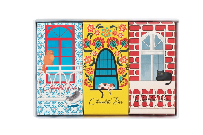 2025年度のバレンタイン商品として、3種の猫が描かれた可愛いチョコレートバーと、サクサク食感のクッキーにミルクチョコレートをサンドしたクッキーサンドショコラを「ハッピーシャトン」シリーズとして、2025年1月下旬より全国のロイスダール店舗にて順次販売開始いたします。美味しいチョコレートと共に癒され猫たちとリラックスタイムをお楽しみいただけるシリーズとなっています。