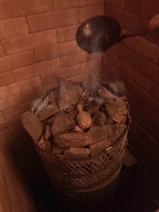 セルフロウリュでは、お客様自身でサウナストーンに天然ハーブ水をかけてロウリュができます。