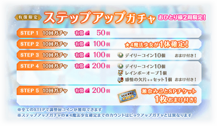 ※STEP2での★4魔法少女について、ピックアップ対象の魔法少女が確定するわけではございません。