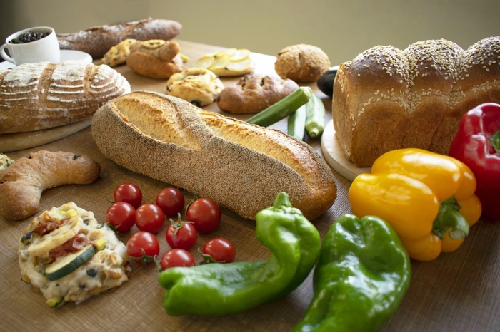 「日々ケルン」では、フードマイレージの観点から兵庫県産や滋賀県産の小麦を使用します。さらに農家「アクアヴェルデ」(南あわじ市)が栽培した高糖度トマト「プチぷよ」や、「八百屋のタケシタ」(神戸市、詳細はリリース下部参照)の不選別野菜(※)を使うなど、味と見た目はもちろん、トレーサビリティにも配慮します。入荷する野菜にあわせて、熟練のパン職人がレシピをアレンジすることで、お客様に様々なパンを楽しんでいただきながらフードロスを解消します。