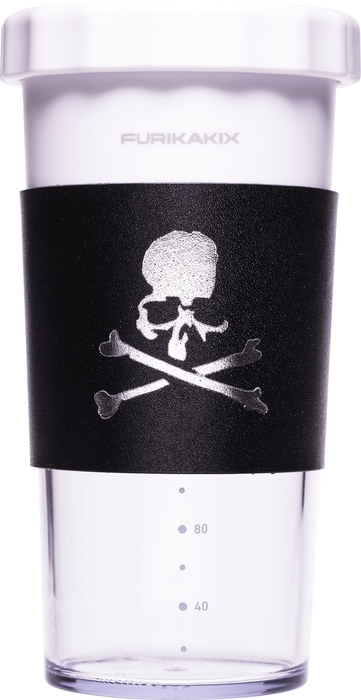 FURIKAKIX用のレザースリーブ。表面にはmastermind JAPANを象徴するスカルマーク、裏面にはFURIKAKIXとMASTERMINDの文字を刻印。