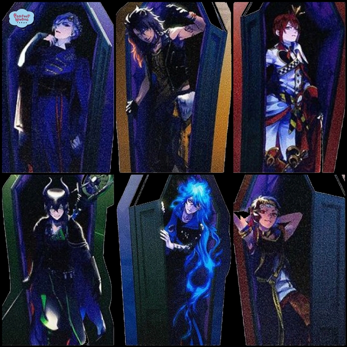 ツイステッドワンダーランドのキャラクターが、棺に入ったデザインのマグネットです。立体感のあるデザインでキャラごとにポーズも違い、ダイカットになっています。