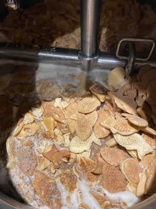 クラフトビールの醸造過程の仕込みの段階で、横浜くりこ庵で作られたたい焼きの皮を一緒に投入。