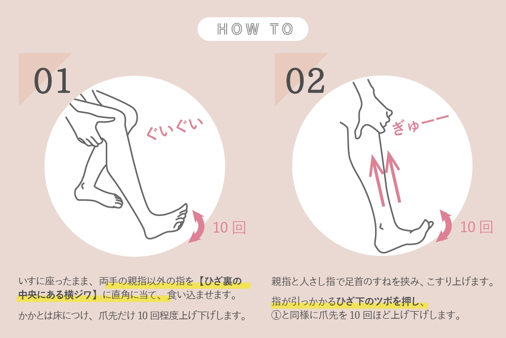 むくみを放置しないことが大切です。セルフマッサージで毎日リセットしましょう。