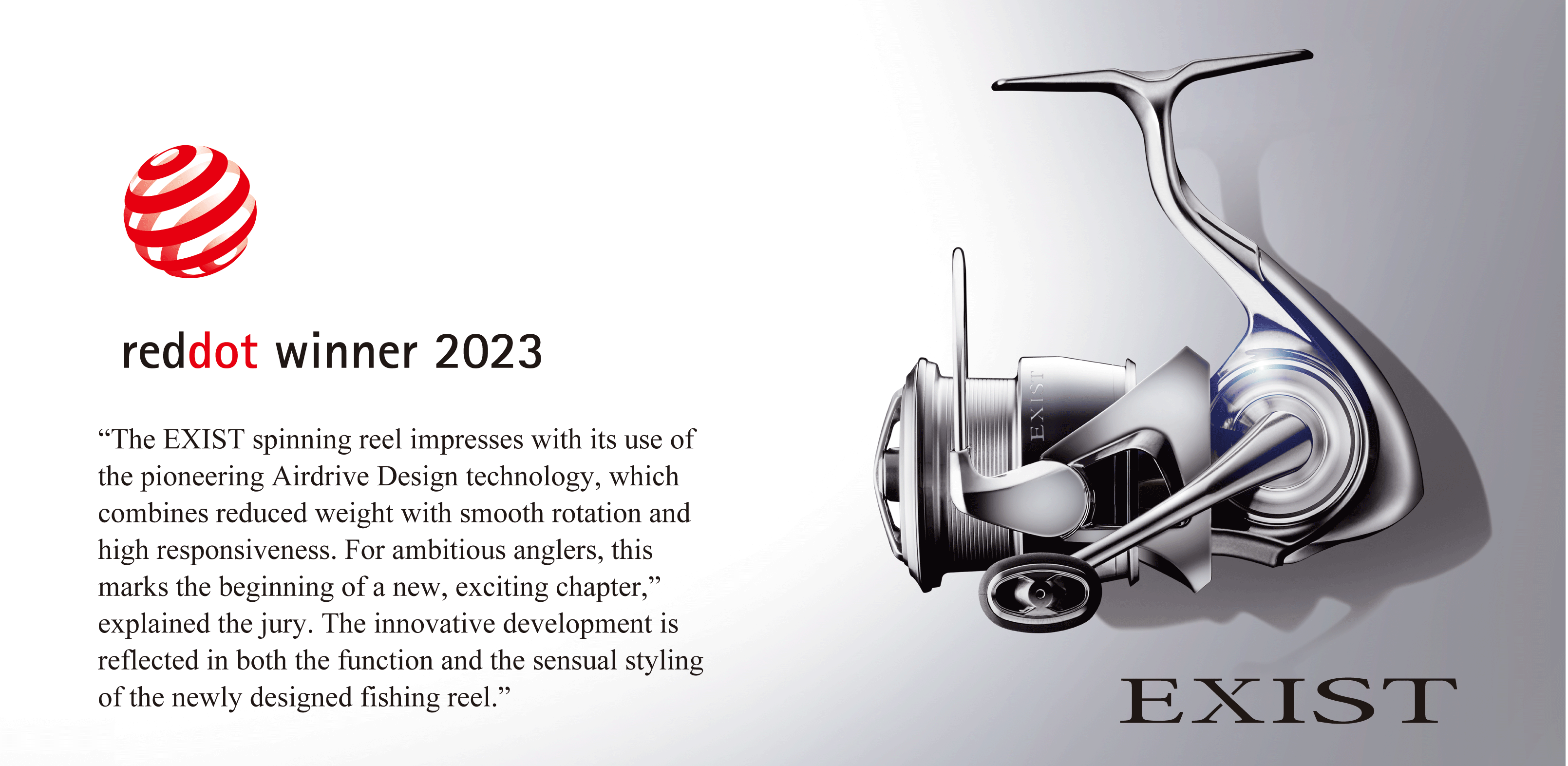 「EXIST スピニングリールは、軽量化とスムーズな回転、高い反応性を兼ね備えた先駆的なAIRDRIVE DESIGN(エアドライブデザイン)の採用が印象的です。アグレッシブな釣り人にとって、これは心躍る新たな釣りシーンの幕開けになるでしょう。」と審査員は説明しました。革新的な開発は、新しく設計されたフィッシング用リールの機能と官能的なスタイルの両方に反映されています。