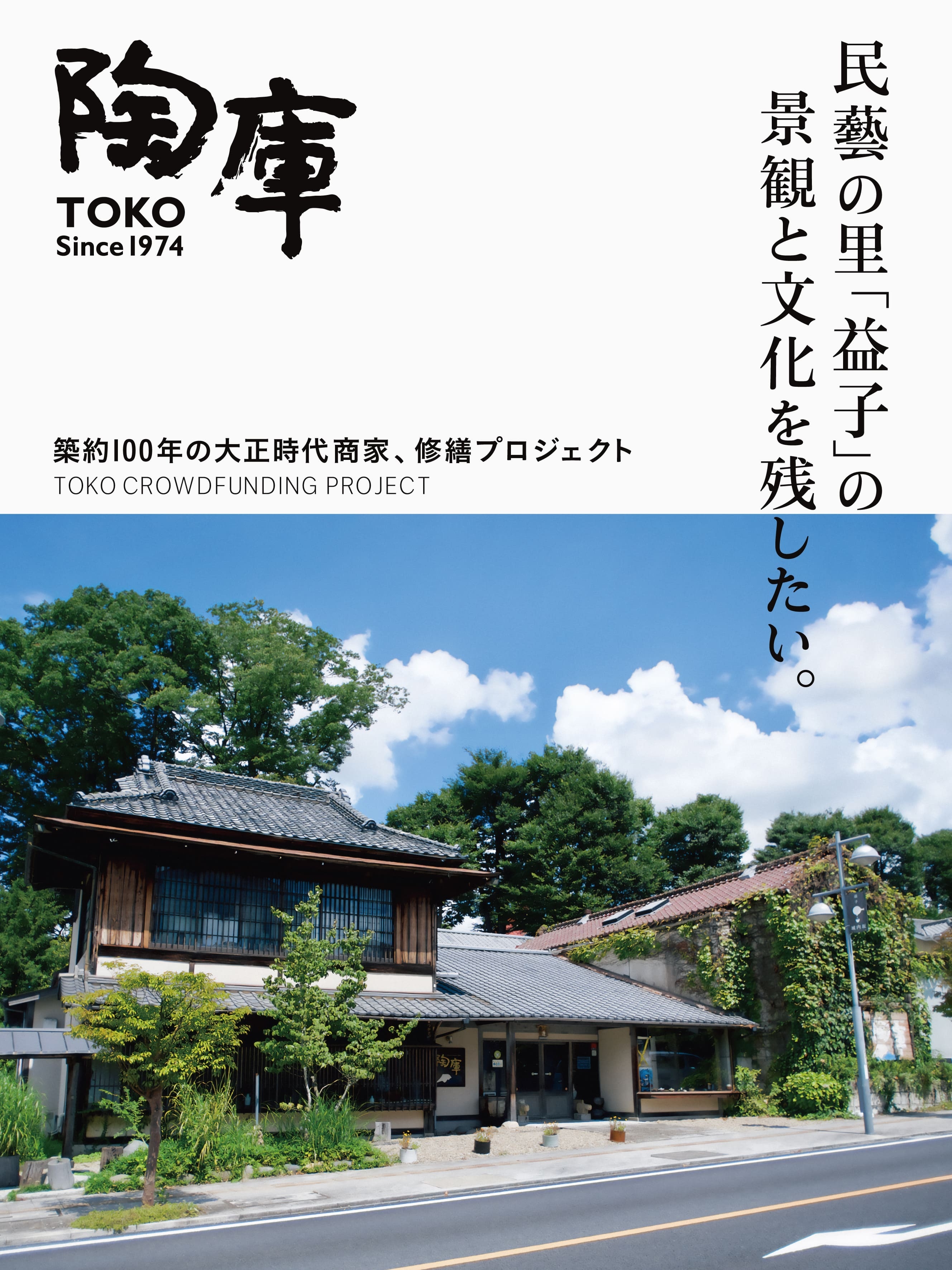 陶庫は1974年の創業以来、益子焼を中心に工芸品の魅力を発信し続けてまいりました。店舗の建物は大正末期に建てられた木造家屋であり、益子祇園祭の御神酒頂戴式が4度行われるなど、地域の歴史や暮らしと深く関わってきた空間です。