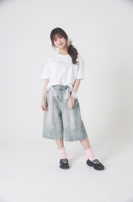 着こなしやヘアスタイルにプラスして、自分らしくアレンジできる「レースリボン付きTシャツ」♡